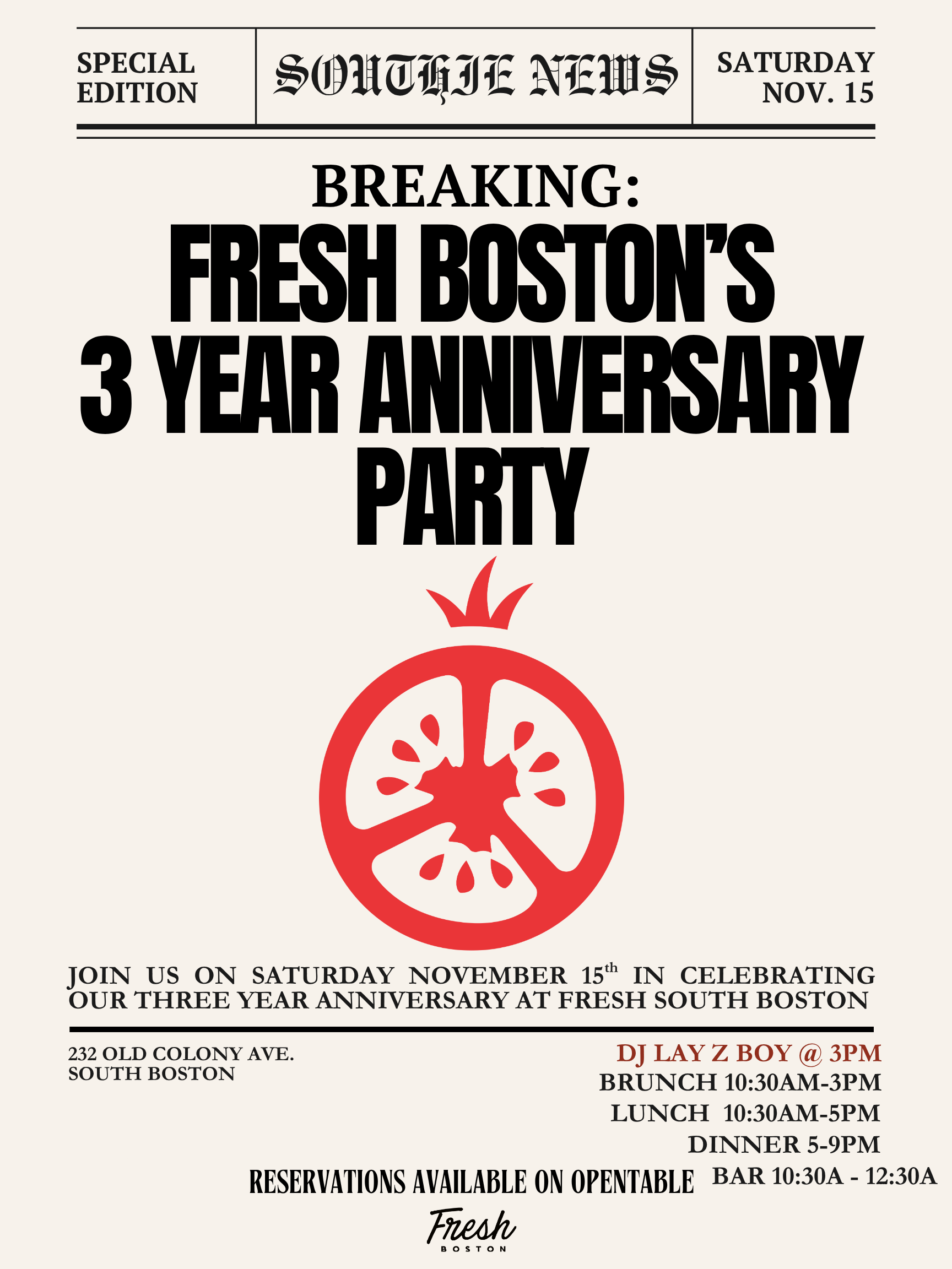 Follow us on Instagram for more @freshsouthboston | Make a Reservation for an upcoming event!